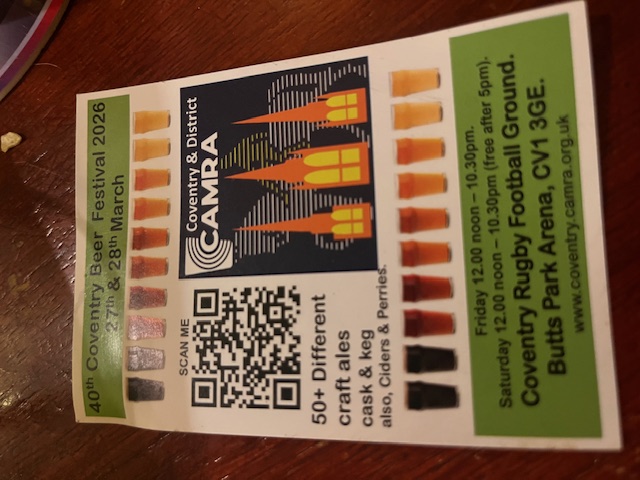 The 40th Coventry Beer Festival organised by Coventry & District CAMRA, featuring 50+ different craft ales, cask and keg, plus ciders and perries. Entry is f...