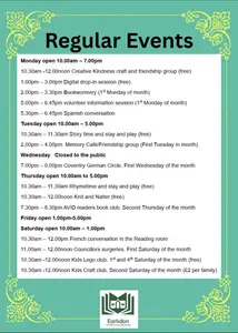 Weekly French conversation group held in the Reading room every Saturday morning.